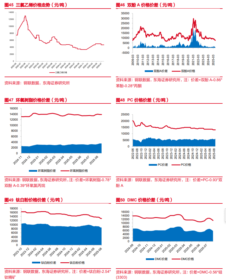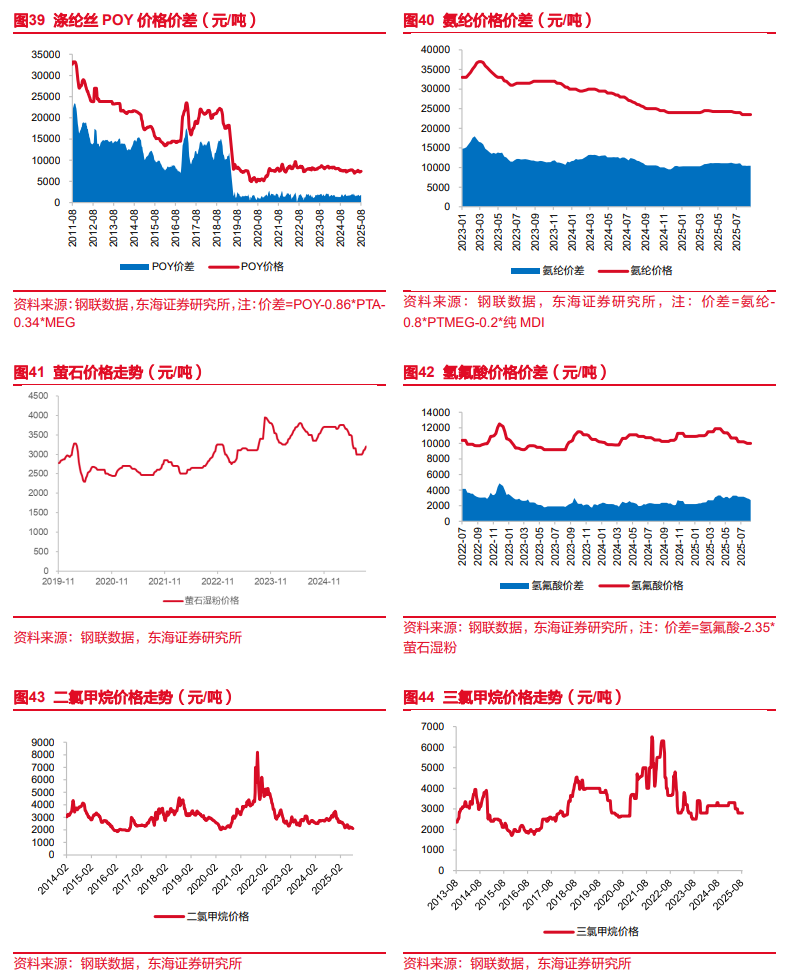 供给侧有望结构性优化,挑选弹性及优势品种板块。国内方面,国家政策端对供给侧要求(“反内卷”)频繁提及;海外方面,上涨的原料成本+亚洲产能冲击,欧美化工企业近期多经历关停、产能退出等事件。短期来看,地缘摩擦反复,海外化工供应不确定性有所增加;长期来看,我国化工产业链竞争优势明显,凭借显著的成本优势和不断突破的技术实力,中国化工企业正迅速填补国际供应链的空白,有望重塑全球化工产业的格局。在此背景下,我们认为从供给角度,1)若供给侧改革强化,关注供给压缩弹性较大板块:有机硅、膜材料、氯碱、染料,关注板块代表企业合盛硅业、兴发集团(有机硅&草甘膦)、东材科技、君正集团、浙江龙盛、闰土股份等;2)供需格局或仍偏弱,关注具有相对优势的品种或龙头企业:煤化工龙头宝丰能源、氟化工制冷剂品种相关及龙头巨化股份、农药板块的广信股份、润丰股份、江山股份等。
