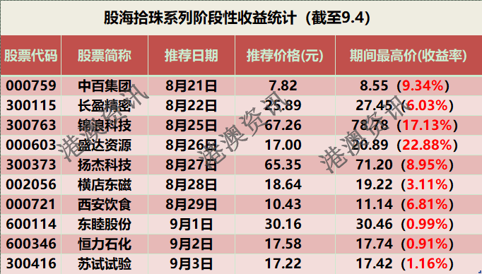 附表:往期股海拾珠系列阶段性收益统计一览(截至9.4)