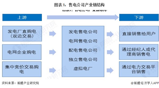 售电是电力生产与消费的核心环节,其既是电力生产的出口,又是用户服务的入口。由于电力生产的特性,无法对已生产的电力进行大规模储备,电力生产与消费必须处于基本均衡的状态才可以提高经济性,避免资源大量浪费。随着技术和体制的双重革新,在未来的产业链中,必定是消费决定生产,消费将处于产业链的优势地位,售电则是为用户电力消费提供服务的核心环节,售电企业成为电力市场的重要参与者。