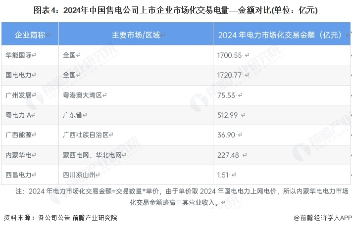 2024年,从上市企业售电公司相关业务业绩对比来看,华能国际和国电电力等全国性电力交易企业其交易金额远超其他上市公司。