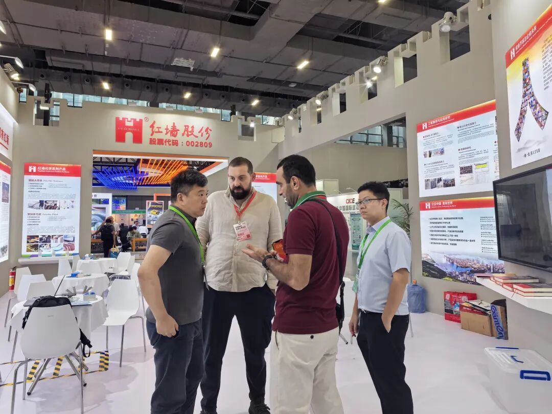 红墙股份展台也吸引了来自新加坡、越南、乌兹别克斯坦、亚美尼亚、印度、中国台湾等混凝土行业代表团,以及各地协会及商会莅临参观,红墙股份的专业团队与来自国内外的客户和行业专家进行了深入的交流与探讨。红墙股份立足华南核心区位,海运距盐田港仅有 50 公里,红墙股份钦州基地距东南亚仅 100 多公里,且作为A股上市公司深耕行业30年,实力雄厚,全国布局,企业治理良好,背靠中海壳牌优质原料,产品品类齐全、体系完备,混凝土减水剂及精细化工上下游一体化的优势赢得了广泛的赞誉和认可。多个国内外团队对公司的产品表现出浓厚的兴趣,并表达了进一步到公司参观和合作的意向。