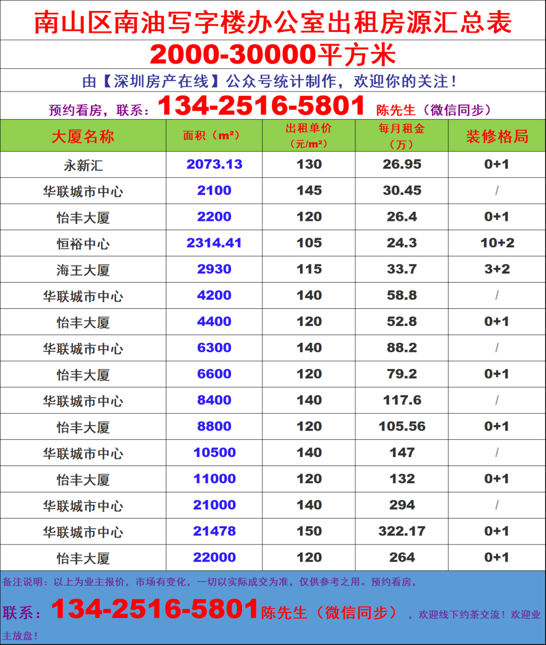 【深圳房产在线】陈先生:134-2516-5801(微信同步)