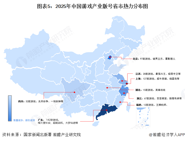 本文核心数据:中国游戏版号发放情况;中国游戏产业版号省市分布情况;2025年中国游戏产业版号省市热力分布图