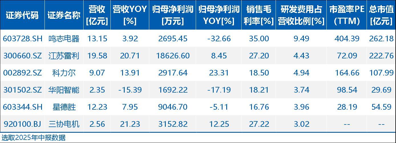同行业上市公司方面,选取鸣志电器(603728)、江苏雷利(300660)、科力尔(002892)、华阳智能(301502)、星德胜(603344)为可比公司。