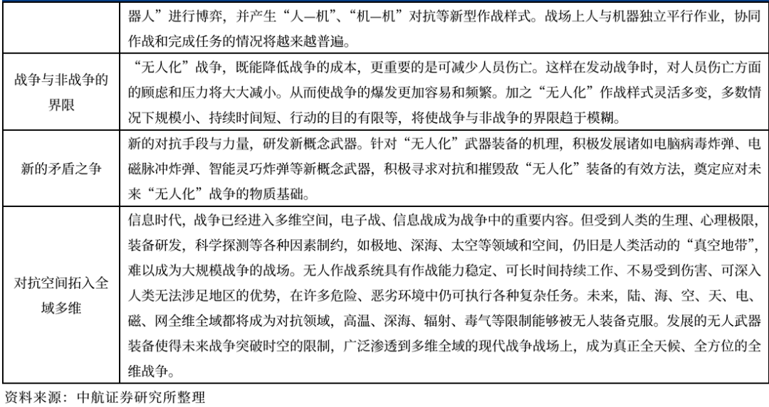 随着人们日常生产生活中无人化与智能化程度的逐步提升,军事作战中的无人化与智能化趋势也已初见端倪。近年来,无人化智能化装备技术越来越多的出现于战场,并运用于个作战空间和作战领域,无人化作战、网电作战、空间对抗、全球监视与打击和一体化弹道导弹防御等新型力量体系均带有智能化作战力量的显著特征。随着自主控制和人工智能技术的大量运用,无人化智能化装备赋予作战体系具备一定程度的智能化指挥决策和自主化行动能力,从而产生能够自主和协同完成进攻与防御作战任务的装备技术,正成为世界主要国家今后一个时期军事技术的发展趋势与重点。智能化装备、无人化系统等新兴装备,作为具备改变未来战争规则潜力的颠覆性科技装备,已成为国家间军事博弈的重要力量,可以预想将会迎来一波智能化与无人化的军事需求革新,以及随之而来的军工产业变革。