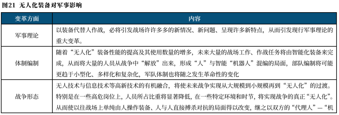 无人装备引发的无人化趋势,将对军工产业及军事攻防对抗产生深远的影响。任何军事技术革新,都可能引发军事领域内的变革。无人化装备作为高新技术的产物,其发展与运用必将对未来军事实践产生重大影响。我们认为,将存在以下影响。