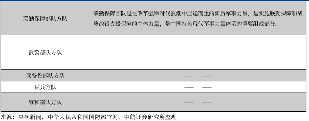改革推动强军,强军支撑强国。党的十八大以来,党中央、中央军委和习主席以前所未有的决心和力度,领导开展新中国成立以来最为广泛、最为深刻的国防和军队改革,人民军队体制一新、结构一新、格局一新、面貌一新,在中国特色强军之路上迈出坚定步伐。2024年,我军调整组建信息支援部队,相应调整军事航天部队、网络空间部队领导管理关系。改革后,中国人民解放军总体形成中央军委领导指挥下的新型军兵种结构布局,包括陆军、海军、空军、火箭军4支军种,以及军事航天部队、网络空间部队、信息支援部队、联勤保障部队4支兵种,本次阅兵中四大军种和四大兵种的集体亮相,既是我军军事力量的全方位展示,也彰显了我军新域新质力量比重的上升。此外,本次阅兵除解放军现役力量以外,还有武警、预备役、民兵等武装力量,构成了具有我军特色的“三结合”武装力量体系。