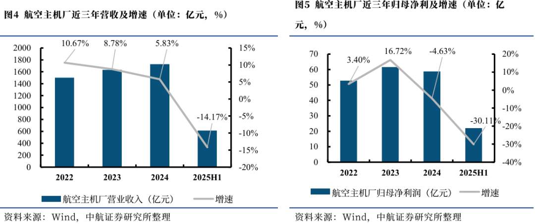 (一)航空主机厂:产品结构及交付节奏影响,业绩短期承压