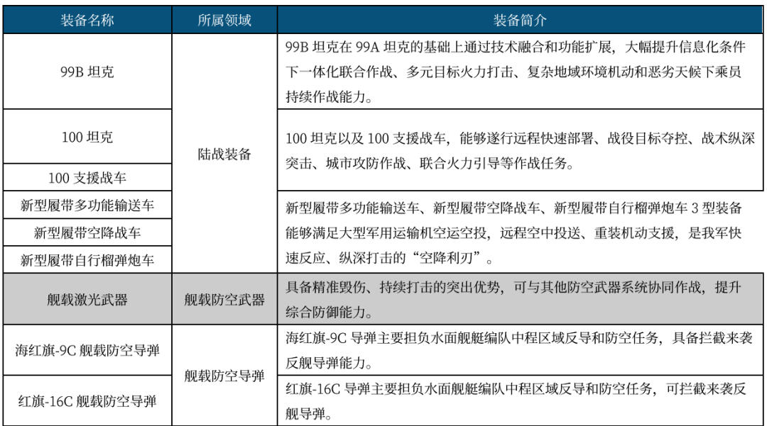 表2 本次阅兵中首次公开亮相的装备列表(部分)