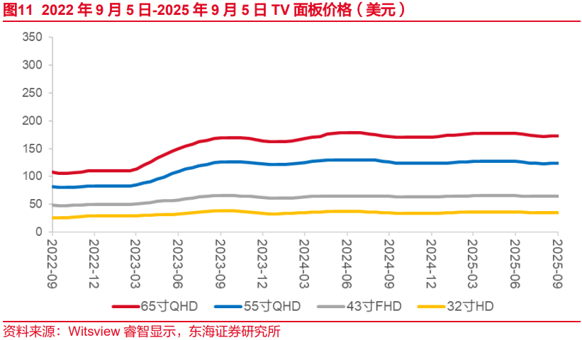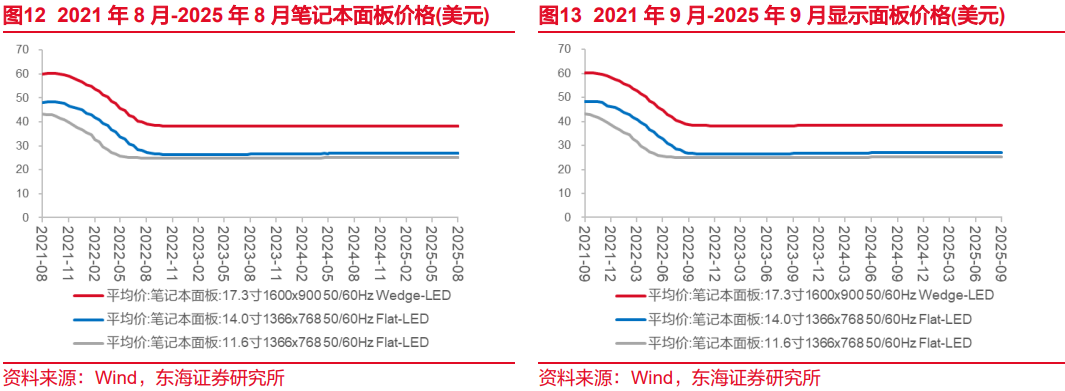 (2)TV面板价格小幅回升后企稳,近期有所回升,IT面板价格逐渐稳定。