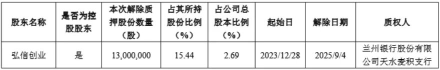 公司于近日接到公司控股股东弘信创业工场投资集团股份有限公司的通知,获悉弘信创业将其所持有公司的部分股份办理了解除质押手续。
