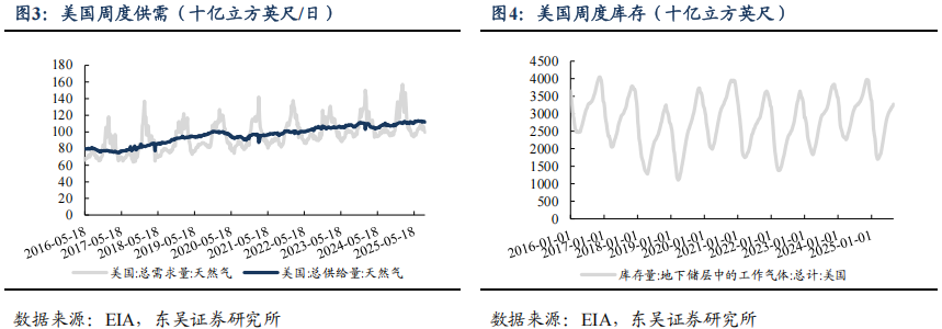 美国天然气市场价格周环比+6.0%。截至2025/09/03,天然气的平均总供应量周环比-0.6%至1119亿立方英尺/日,同比+3%;总需求周环比-3%至996亿立方英尺/日,同比+0.5%;发电用天然气周环比-6.7%;住宅和商业部门的天然气消费量周环比+2.0%;工业部门的天然气消费量周环比+0.8%。截至2025/08/29,储气量周环比+550至32720亿立方英尺,同比-2.2%。