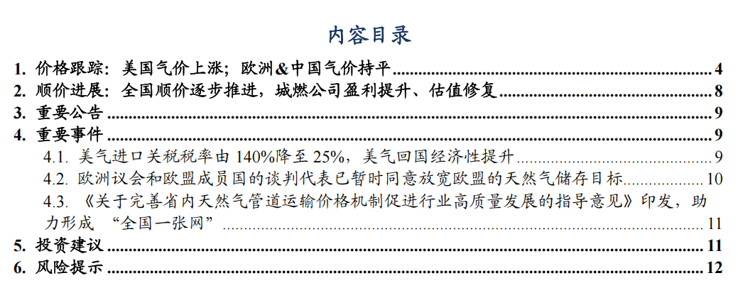 供给宽松,燃气公司成本压力进一步下行;价格机制继续理顺、需求放量。2/10起关税由0%变为15%;4/10起,继续加征34%关税,合计加征49%关税,随后进一步宣布增加到140%;2025/5/12商务部发布中美日内瓦经贸会谈联合声明,美气进口关税税率由140%降至25%;8/12宣布继续维持25%关税税率90天。加征关税主要影响具备美国气源的公司,如新奥股份,需关注后续公司的美国长协是否可通过转口等方式达到预期价差。