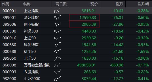 A股:截至发稿,沪指涨0.10%,深成指跌0.13%,创业板指跌0.52%。
