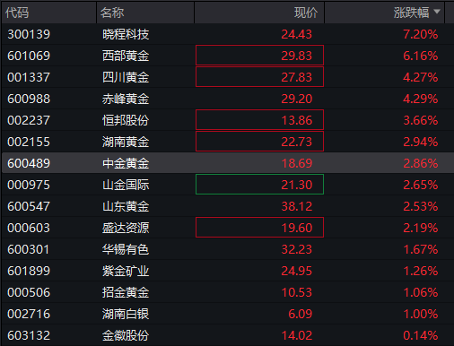 黄金概念开盘表现活跃,迪阿股份涨近10%,晓程科技、西部黄金、赤峰黄金跟涨。