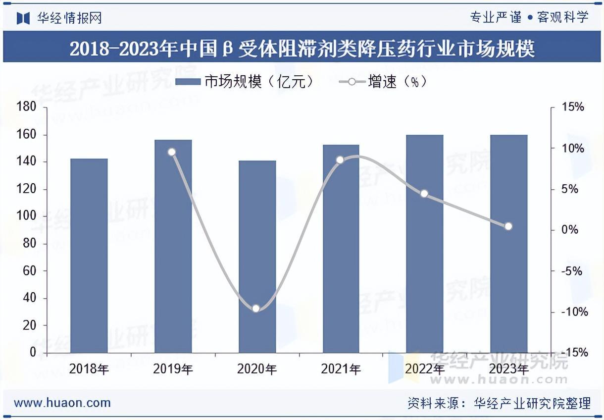 中国65岁及以上的老年人口以每年3%的速度增长,高血压等心血管疾病在老年人中发病率较高,这为β受体阻滞剂类降压药市场提供了持续的需求。另一方面医保政策的完善和覆盖范围的扩大,提高了药品的报销比例,减轻了患者的经济负担,从而增加了β受体阻滞剂类降压药的使用量。数据显示,2023年中国β受体阻滞剂类降压药行业市场规模以上涨至160.33亿元。