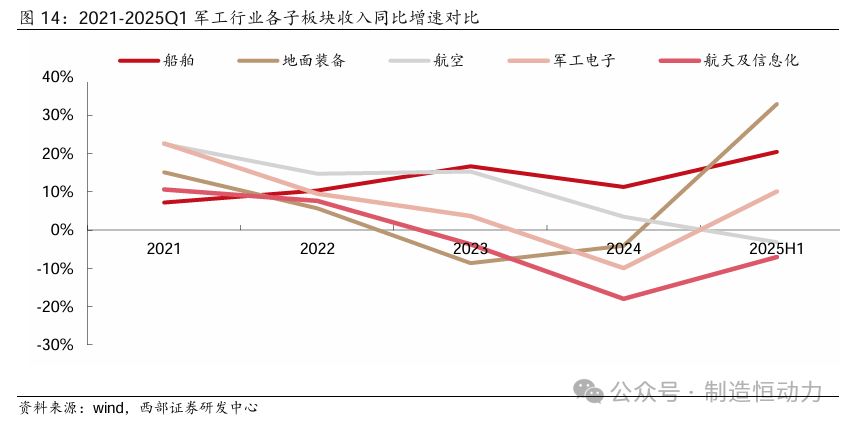 3.1 营收端:十四五攻坚,地面装备板块收入增速领跑行业