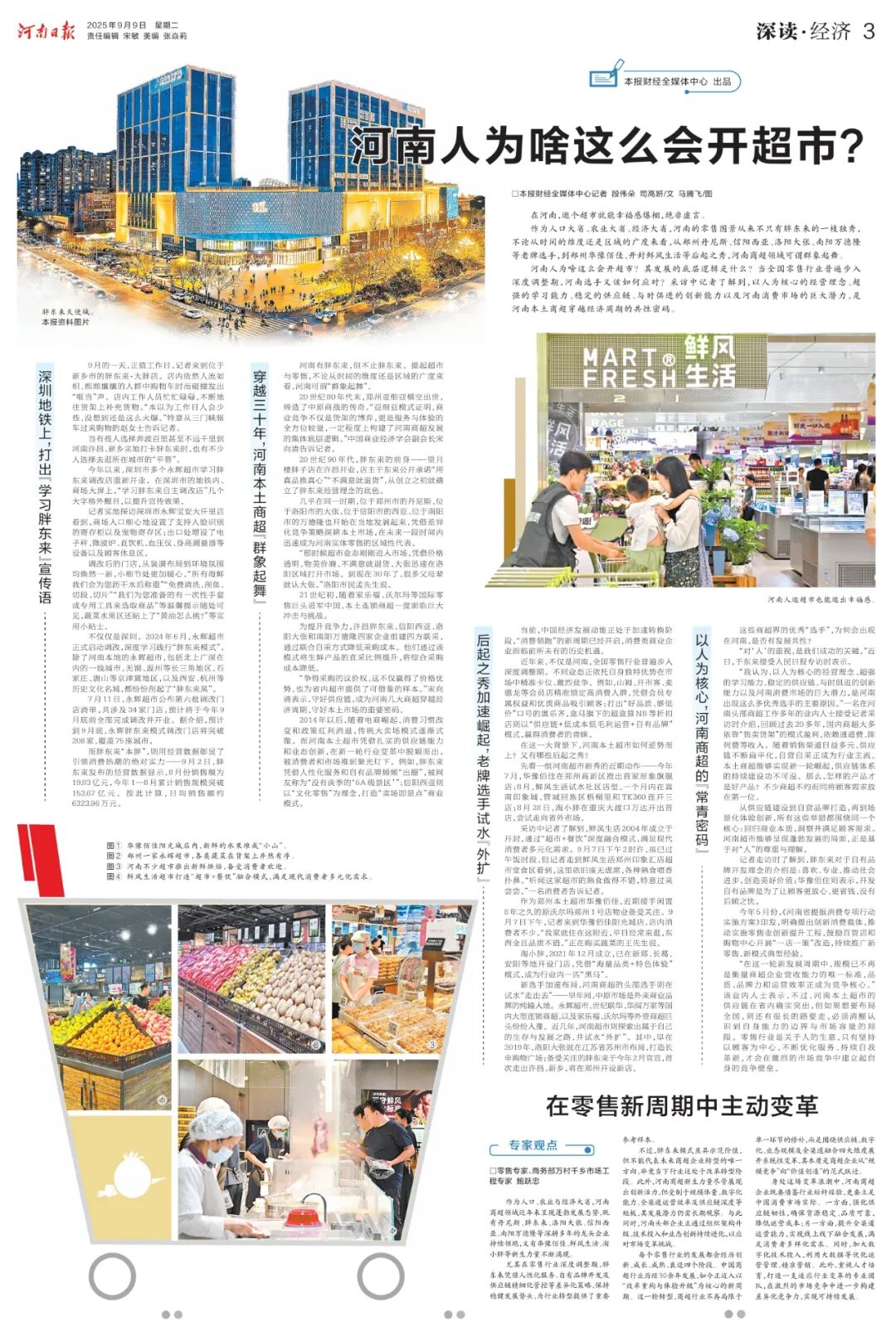 河南人为啥这么会开超市?其发展的底层逻辑是什么?当全国零售行业普遍步入深度调整期,河南选手又该如何应对?采访中记者了解到,以人为核心的经营理念、超强的学习能力、稳定的供应链、与时俱进的创新能力以及河南消费市场的巨大潜力,是河南本土商超穿越经济周期的共性密码。