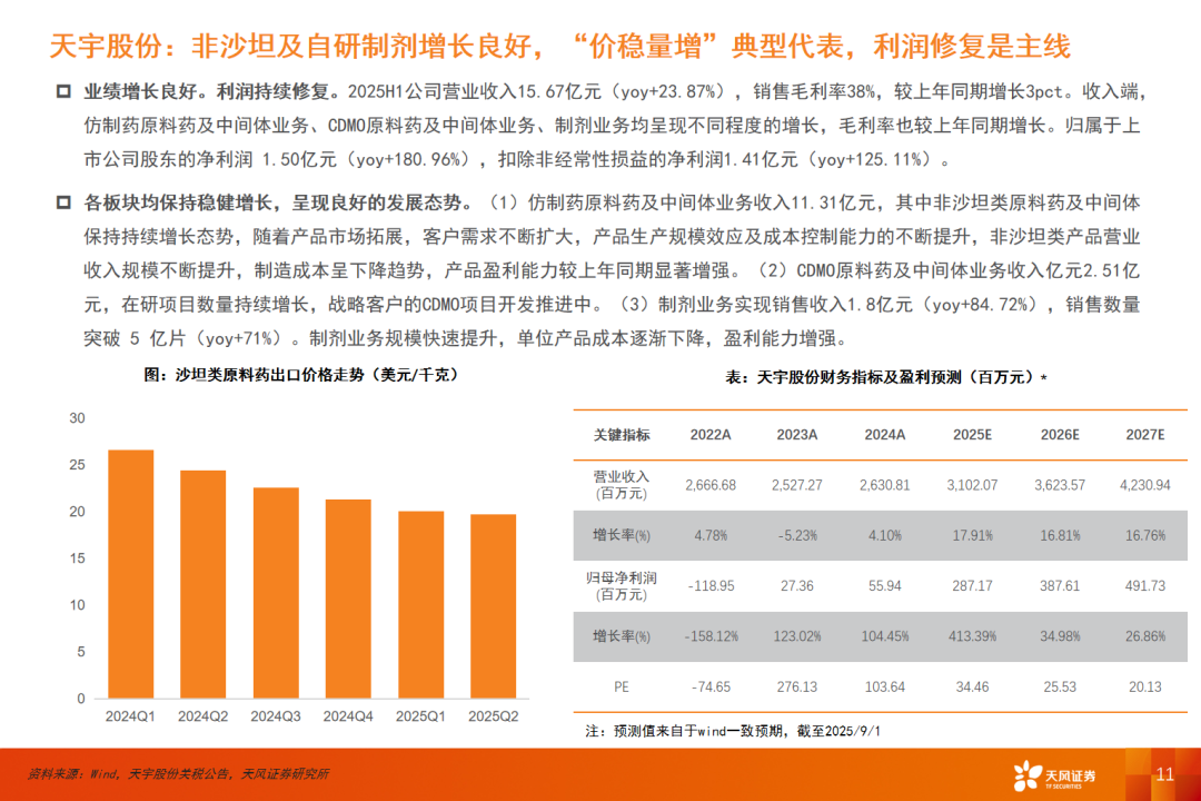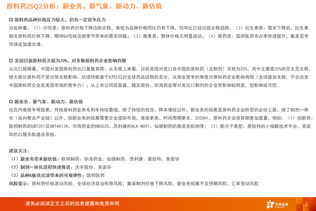 证券研究报告:《天风证券-医药生物-行业专题研究:原辅包行业及个股2025半年度回顾与展望——天风医药细分领域分析与展望(2025H1)》