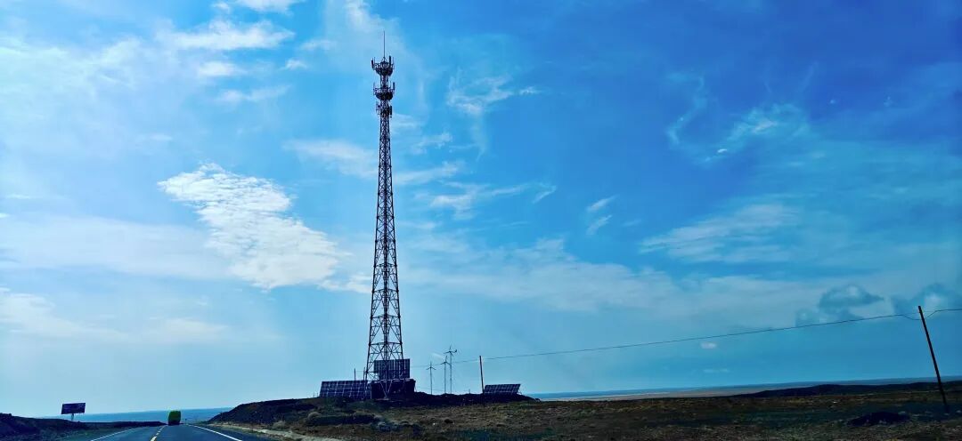 一座完全依靠风光储运行的离网通信基站;9月9日侦碳摄于216国道新疆富蕴段无人区