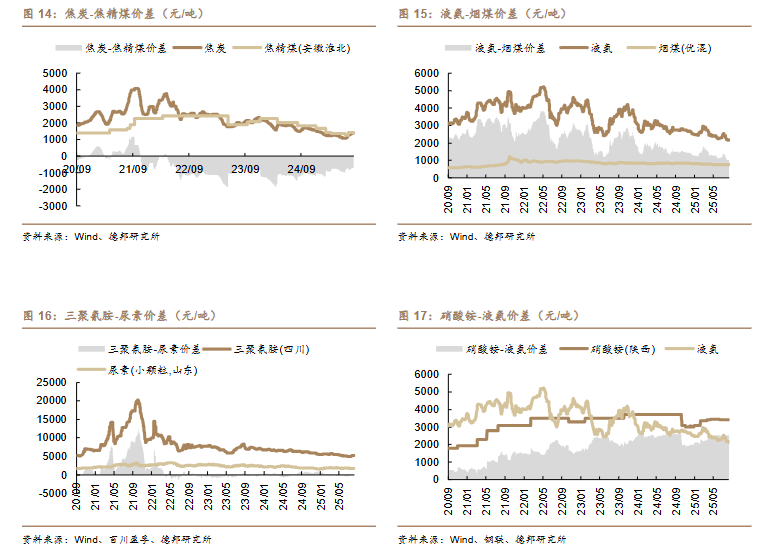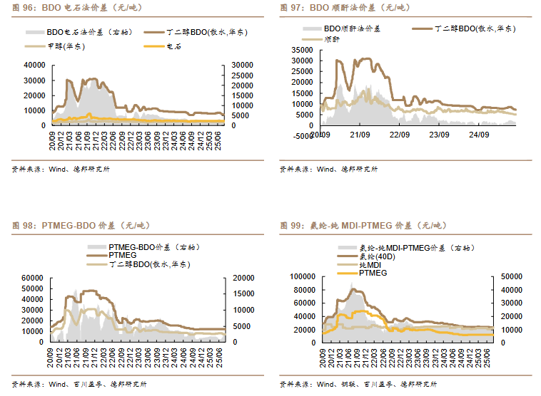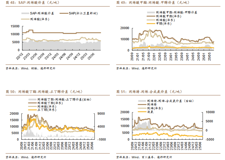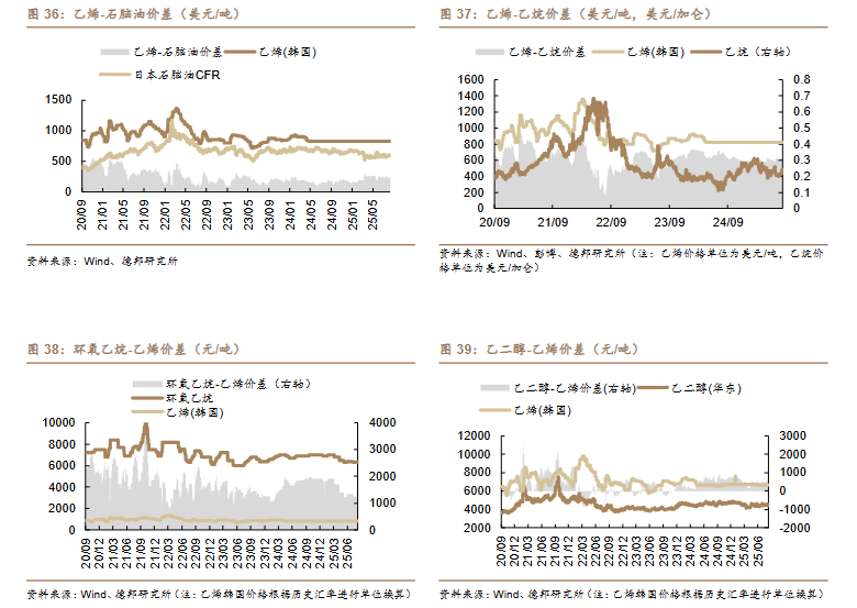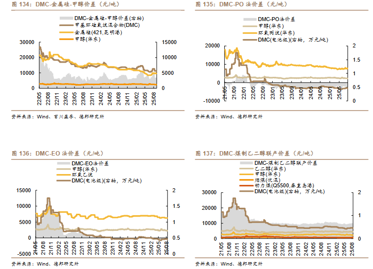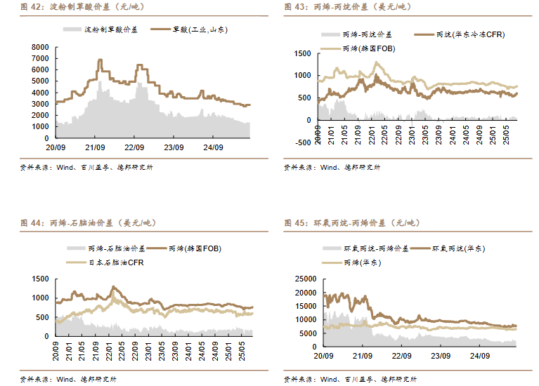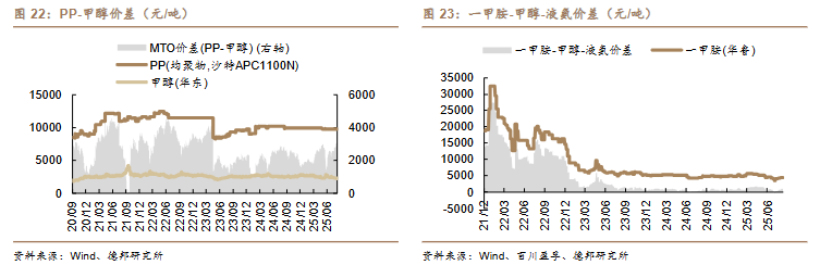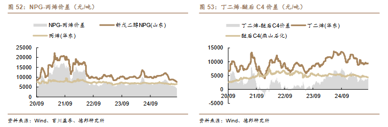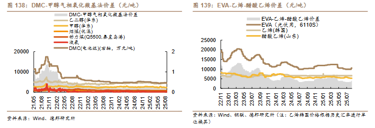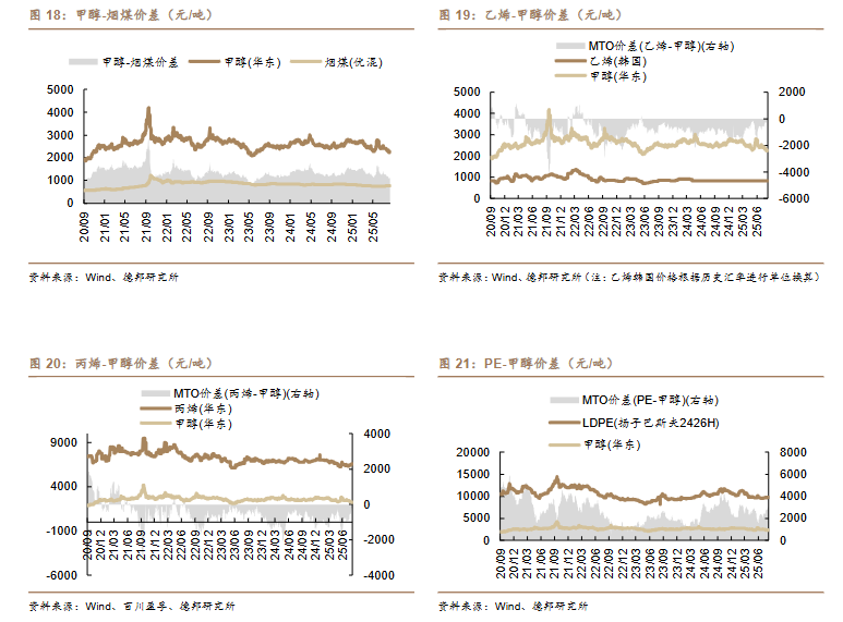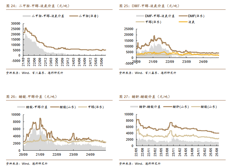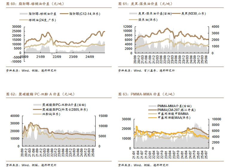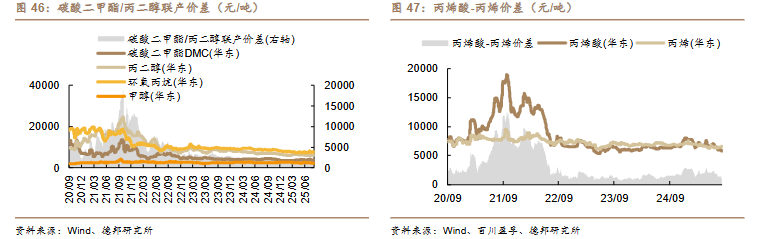 /吨)、丙烯-丙烷价差(-10 美元/吨)、二甲醚-甲醇价差(-14 元/吨)。