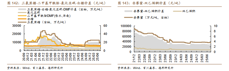 2)供给短缺或约束的行业率先迎来弹性。部分化工品的供给端已出现扰动,关注相关企业涨价带来的业绩弹性。①维生素:巴斯夫停产与帝斯曼业务剥离,行业格局或已重大改变,本轮行情有望超预期。关注:浙江医药、新和成、能特科技。②三氯蔗糖:进入长协订单旺季龙头挺价意愿较强,本轮涨价有望超预期。关注:金禾实业。③制冷剂:2025 年初步配额方案符合预期,二代加速淘汰趋势不变,三代利空风险出尽,叠加内外贸双旺态势,制冷剂已开启新一轮涨幅。关注:巨化股份、三美股份、东岳集团。④涤纶长丝:回调后当前赔率较高,据百川盈孚数据显示,下游织造并不悲观,旺季有望迎来价格价差弹性。关注:桐昆股份、新凤鸣。