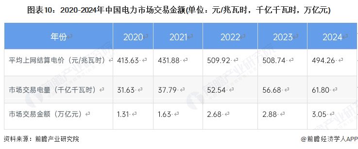 前瞻参考华能国际电力股份有限公司历年平均上网结算电价以及电力市场交易电量初步统计2024年全国电力交易规模约3.05万亿元,同比增长5.92%。