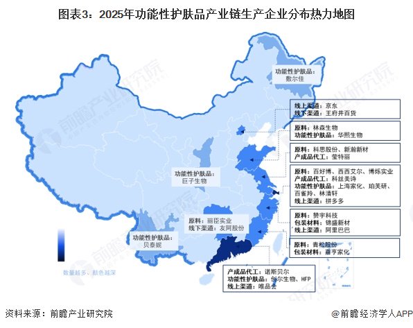 从企业区域分布来看,我国功能性护肤品产业链企业主要分布在东部沿海地区,上海和广东的功能性护肤品产业链企业分布相对完善,其中上海的产业链企业数量最多,达9家。