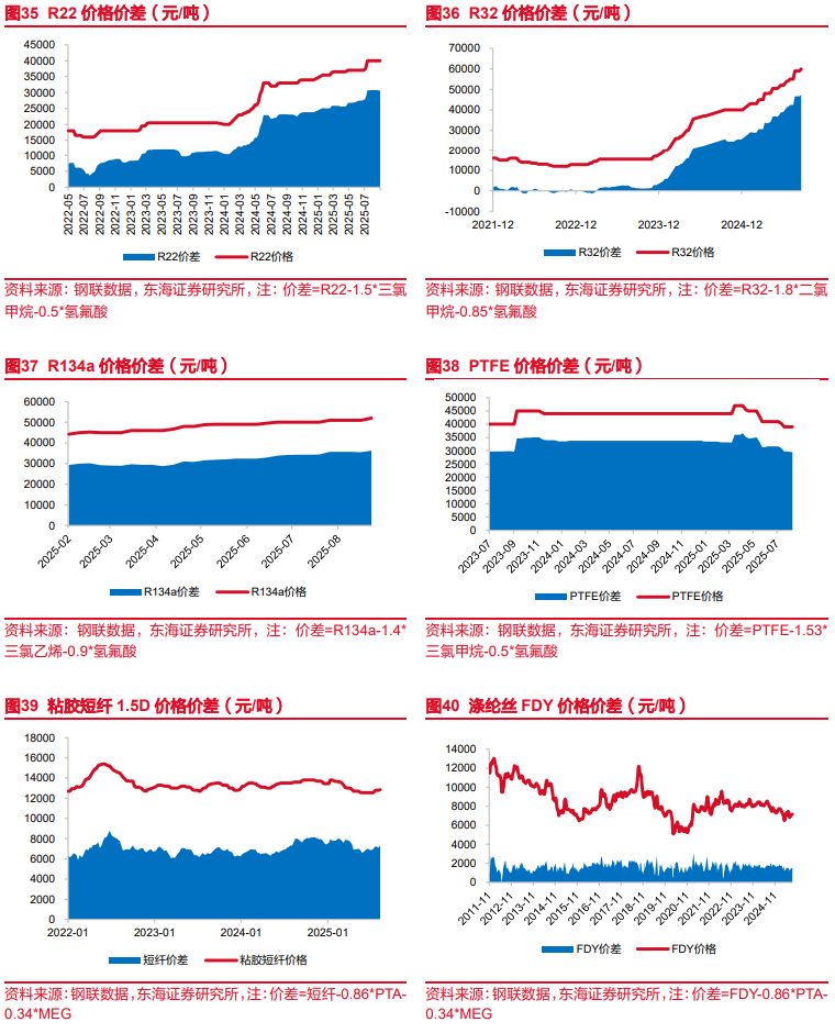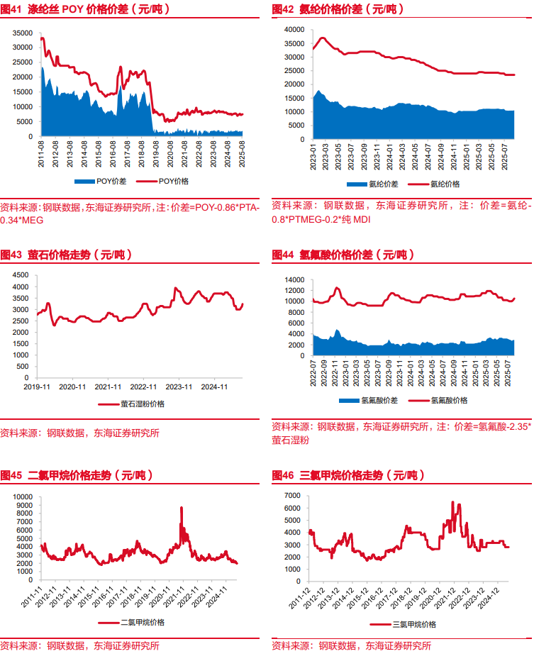 供给侧有望结构性优化,挑选弹性及优势品种板块。国内方面,国家政策端对供给侧要求(“反内卷”)频繁提及;海外方面,上涨的原料成本+亚洲产能冲击,欧美化工企业近期多经历关停、产能退出等事件。短期来看,地缘摩擦反复,海外化工供应不确定性有所增加;长期来看,我国化工产业链竞争优势明显,凭借显著的成本优势和不断突破的技术实力,中国化工企业正迅速填补国际供应链的空白,有望重塑全球化工产业的格局。在此背景下,我们认为从供给角度,1)若供给侧改革强化,关注供给压缩弹性较大板块:有机硅、膜材料、氯碱、染料,关注板块代表企业合盛硅业、兴发集团(有机硅&草甘膦)、东材科技、君正集团、浙江龙盛、闰土股份等;2)供需格局或仍偏弱,关注具有相对优势的品种或龙头企业:煤化工龙头宝丰能源、氟化工制冷剂品种相关及龙头巨化股份、农药板块的广信股份、润丰股份、江山股份等。
