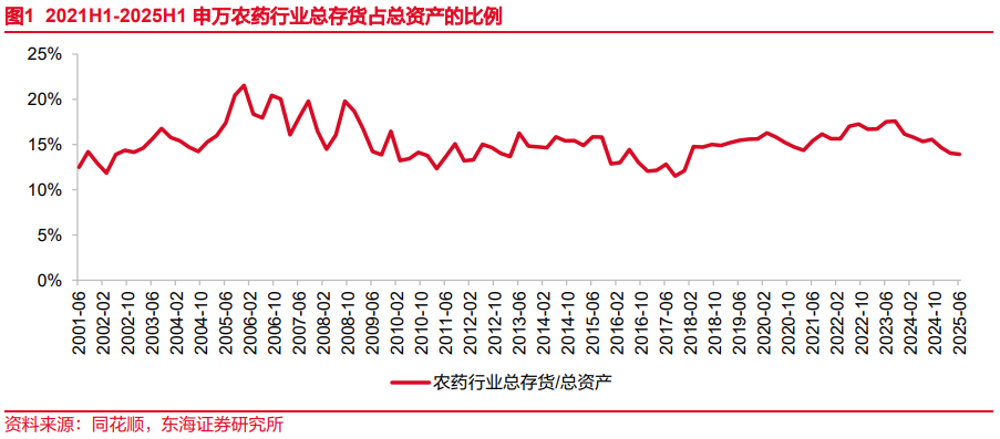 截至上周,各公司2025年半年报已披露,2025年6月30日申万农药板块总存货占总资产比例为13.94%,较3月31日下降0.12pct,农药库存自2023年9月高点以来持续波动下行。