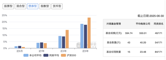 从整体业务结构来看,兴银基金呈现出明显的“固收依赖”特征。2025年上半年数据显示,公司债券基金净资产为594.74亿元,货币基金规模399.41亿元,两者合计994.15亿元,占到2025年8月25日总规模1103.67亿元的九成以上,权益类产品占比极低。这种结构在短期内为公司提供了稳定的规模基础,但长期却限制了发展空间,同时也加大了对机构资金的依赖。