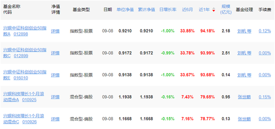 兴银中证科创创业50指数系列基金虽然短期反弹迅猛,但单位净值依然低于1元,投资者自成立以来大概率仍处于亏损状态,且E类份额规模仅0.14亿元,接近清盘线。类似的,兴银科技增长1个月滚动混合A、C规模分别为0.95亿元和0.13亿元,也面临体量过小的困境。规模不足推高了交易成本比例,降低运作效率,还容易引发因担忧清盘而出现的赎回潮,形成“规模缩水—业绩波动—赎回加剧”的恶性循环。