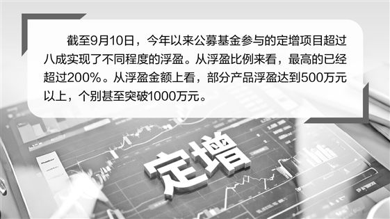 今年以来,公募基金在定增市场的表现颇为亮眼。随着市场回暖,公募八成以上的定增项目实现了浮盈,部分基金在单个定增标的上的浮盈突破千万元,亦有个股因股价大幅攀升带来可观的浮盈比例。