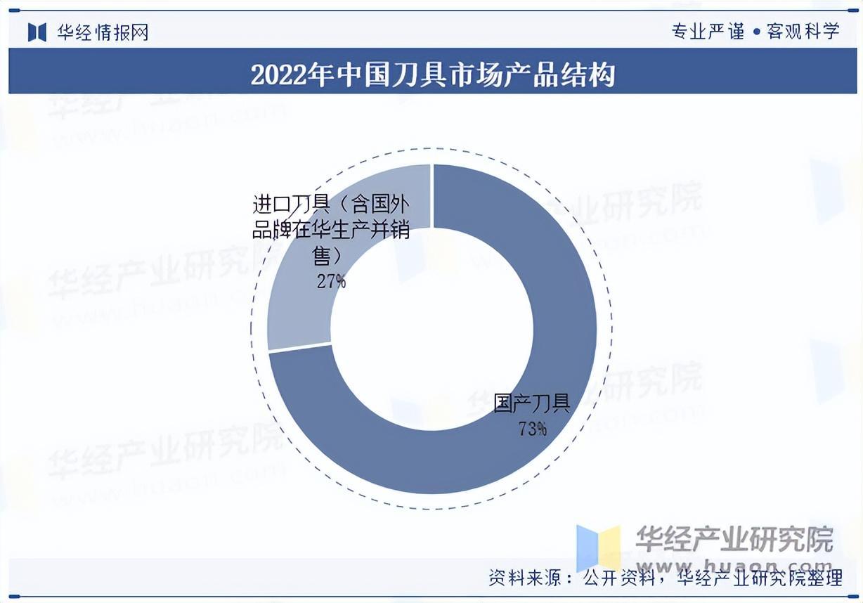 其中:国产刀具占比72.8%,同比下降0.3%;进口刀具(含国外品牌在华生产并销售)占比27.2%,同比下降8.7%。国产刀具在中国市场占比与2021年相比增加1.8个百分点。进口刀具在中国市场占比与2021年相比下降1.8个百分点。