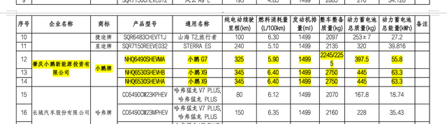 小鹏G7/X9增程版部分参数 工信部