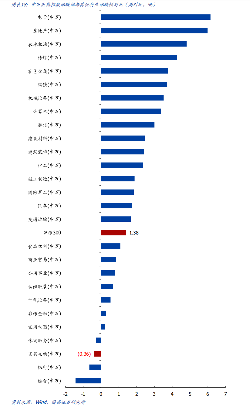 1、当周表现:本周市场震荡上行,电子、地产领涨。医药指数震荡波动为主,周一器械出现大幅上涨,周四周五创新药出现大幅波动,周五部分辨识度较高的、前期强势的A股创新药有回归趋势,整周来看港股未进港股通的医药公司较为强势,刚进通两个创新药标的涨幅在板块中靠前,其他本周看点不多。