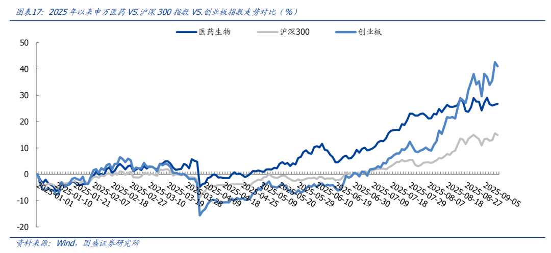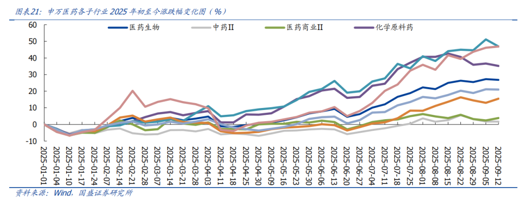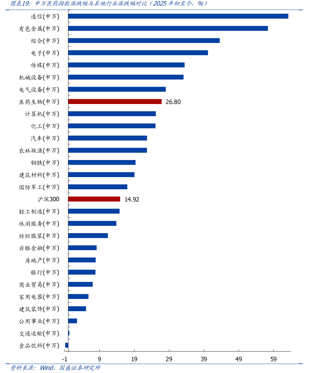在所有行业中,当周医药涨跌幅排在第25位。2025年初至今,医药涨跌幅排在第8位。