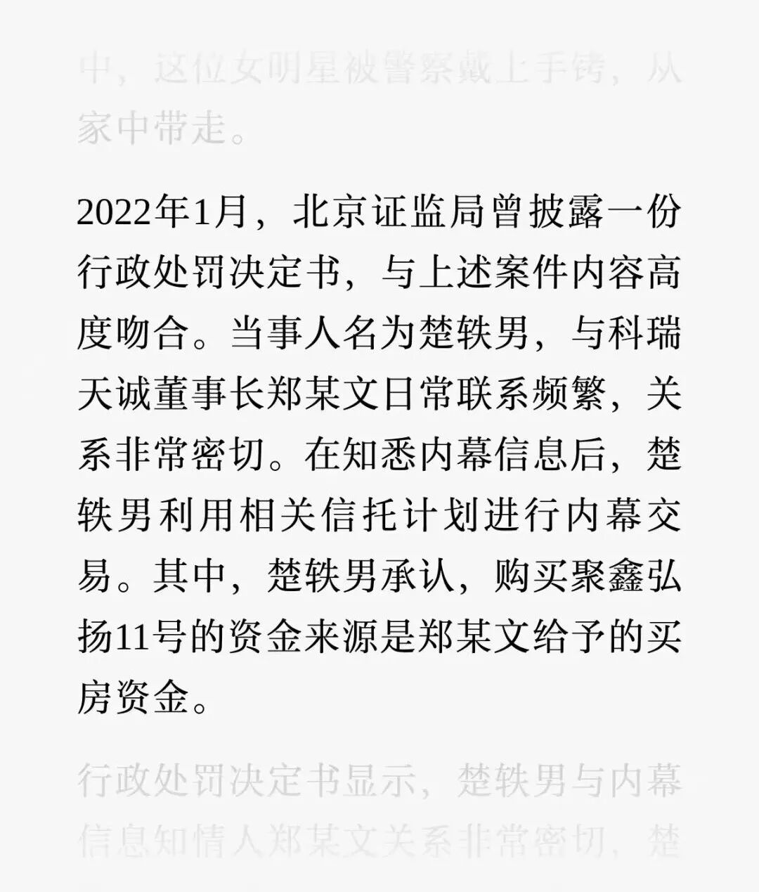 女明星是一家上市公司董事长的女朋友,2017年从董事长那里拿到了内幕消息,买了另外一家上市公司的股票。