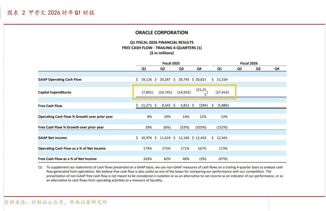 甲骨文与OpenAI达成大规模合作协议后,上季度未完成履约义务金额激增至4550亿美元,推动股价盘后大幅上涨14%;云计算基础设施营收达33亿美元,同比增长55%超预期,调整后每股收益1.47美元略低于市场预期的1.48美元。公司近期与OpenAI签署算力合作协议,重要客户还包括TikTok、英伟达等,CEO表示本季度签署4份百万美元级合同,云需求持续强劲。