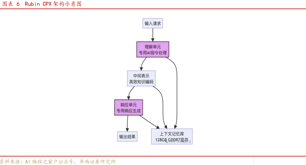 Rubin CPX的创新在于将AI任务的理解和响应阶段分离,由专门优化的硬件单元处理。Rubin CPX的工作方式犹如一家高效的出版社:编辑团队(理解单元):专门处理稿件审查、结构分析和内容规划,专注于"理解"内容。写作团队(响应单元):根据编辑团队的指导和要求,专注于"生成"高质量内容。资料档案馆(显存):存储大量参考书籍和历史资料,供两个团队随时查阅。工作流程:编辑团队先分析稿件要求并标记重点,然后将加工好的大纲和参考资料交给写作团队进行具体创作。