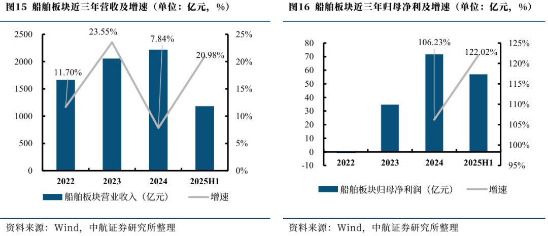 船舶板块则表现较好,处于景气上行周期,在民船领域需求及价格均出现提升,业绩连续实现高增长。