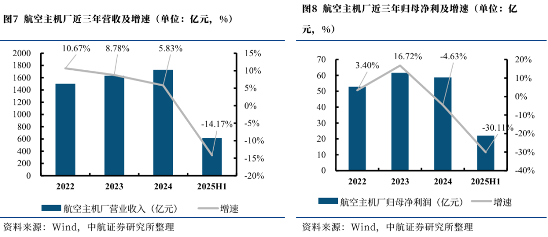 (一)航空主机厂:产品结构及交付节奏影响,业绩短期承压
