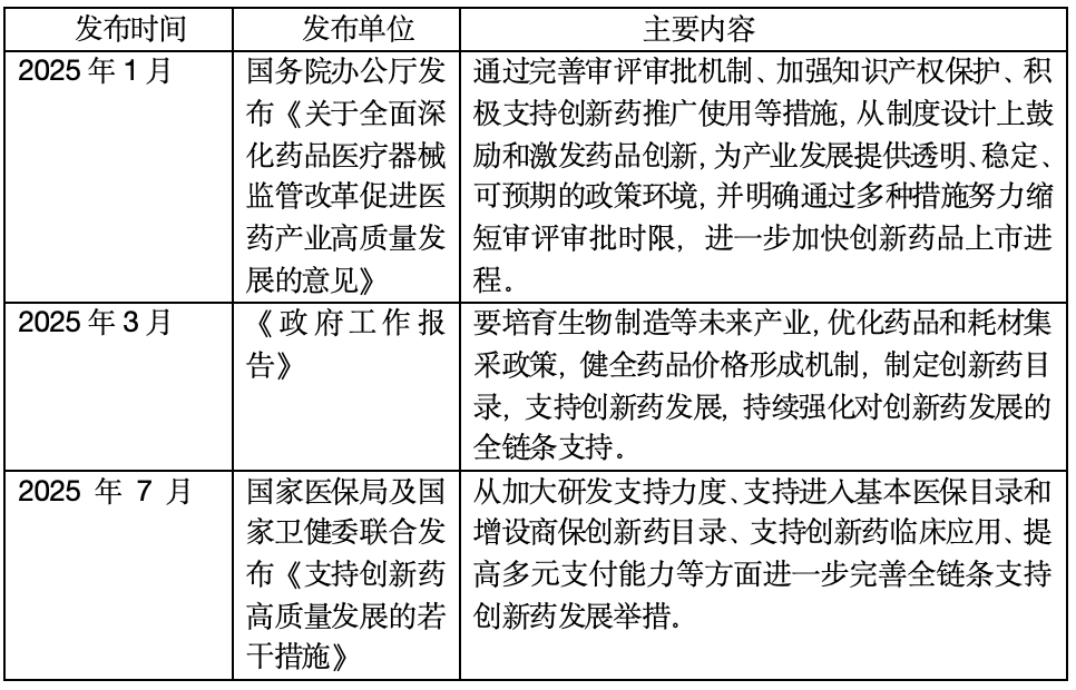 (2025年以来,国家层面多次出台政策支持创新药发展)