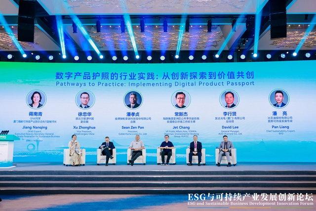 圆桌对话二聚焦“数字产品护照的行业实践:从创新探索到价值共创” 主题。GF60首席经济学家、厦门海峡可持续产业研究院院长张俊杰做圆桌引导,重点分析了国际贸易中的关税与非关税壁垒、欧盟DPP政策法规进展、中国DPP框架建设以及跨国供应链信息披露面临的挑战。圆桌对话由GF60专家、厦门海峡可持续产业联合会执行副秘书长蒋南青主持。道达尔能源中国副总裁徐忠华,金牌厨柜家居科技股份有限公司总裁潘孝贞,陶朗集团亚洲区公共事务副总裁、欧盟商会环境工作组主席常新杰,友达光电(厦门)有限公司总经理李行贤,以及比亚迪股份有限公司首席可持续发展专家潘亮各自从能源、制造、家居、光电及汽车等行业视角出发,深入探讨了数字产品护照在产业创新实践、跨部门协作、绿色供应链建设及价值共创等方面的应用经验与前沿案例,为推动数字产品护照在不同行业的落地与发展提供了丰富启示。