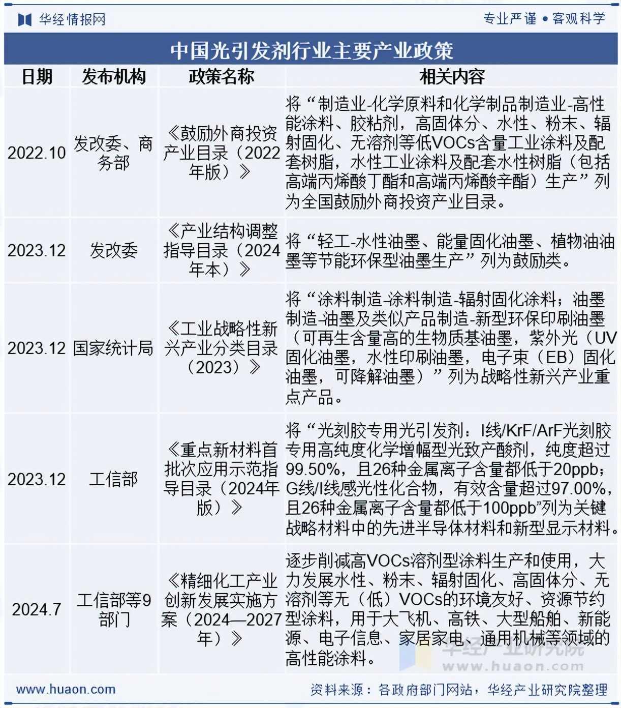 一、光引发剂产业政策分析
