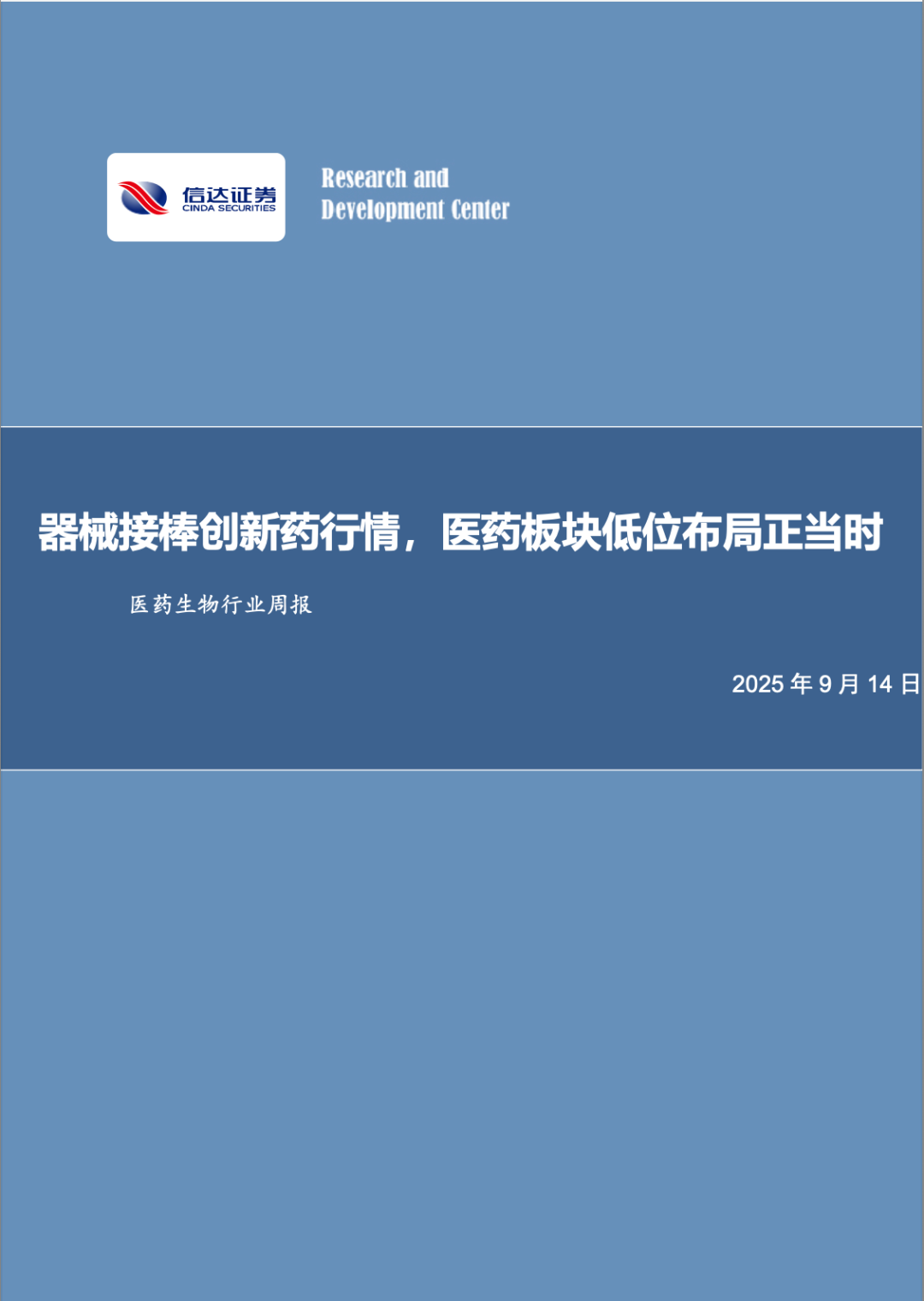 本文来自信达证券研发中心2025年9月14日发布的《器械接棒创新药行情,医药板块低位布局正当时》,欲了解具体内容,请阅读报告原文,唐爱金S1500523080002,贺鑫S1500524120003,曹佳琳S1500523080011,章钟涛S1500524030003,赵丹S1500524120002。