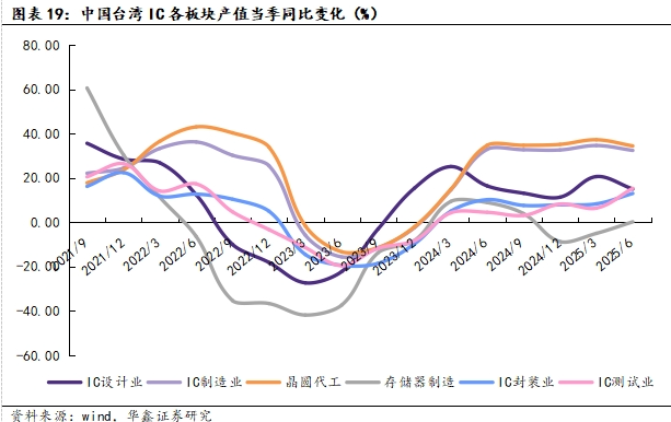 我们可以通过中国台湾IC产值同比增速,将电子各板块合在一起观察: