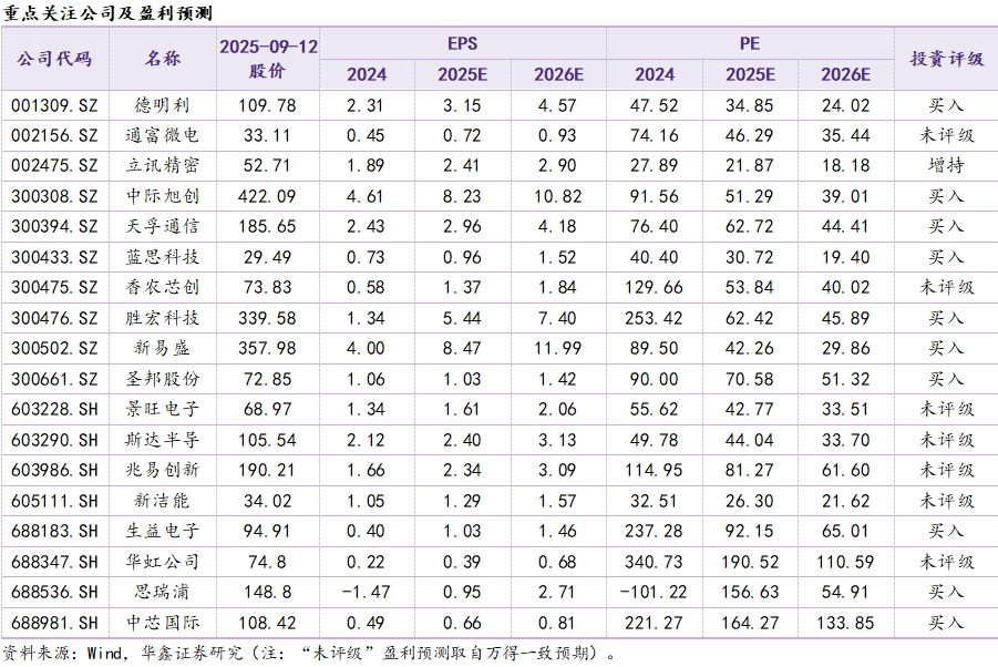 商务部决定自2025年9月13日起对原产于美国的进口相关模拟芯片进行反倾销立案调查。具体来看,被调查的模拟芯片主要分为两大类:1)40nm及以上工艺制程的通用接口芯片;2)栅极驱动芯片。接口芯片方面,被调查的产品主要包括:1)符合ISO11898标准的控制器局域网接口收发器芯片,用于汽车及其他工业产品中各系统之间信号的发送与接收;2)符合TIA/EIA-485标准的RS485接口收发器芯片,用于工业系统中各类设备之间信号的发送与接收;3)基于利用串行数据线和串行时钟线的低速串行总线方式制得的双向二线制同步串行总线接口芯片,用于设备中的各类板卡或芯片之间的信号缓冲中继通道的切换与扩展;4)符合国际电工委员会IEC 60747-5-2标准的数字隔离器芯片,用于汽车及其他工业产品中高低压系统之间的绝缘通信,或用于增强通信抗干扰性能;5)其他同时兼容上述种类的通用接口芯片。栅极驱动芯片方面,被调查的产品主要包括:1)低边栅极驱动芯片;2)半桥/多路栅极驱动芯片;3)隔离栅极驱动芯片。建议关注:1) 模拟芯片:圣邦股份、思瑞浦;2)功率半导体:斯达半导体、新洁能;3)车规级芯片:兆易创新;4)晶圆代工:中芯国际、华虹公司;5)封测厂商:通富微电。