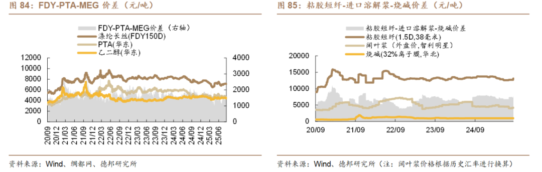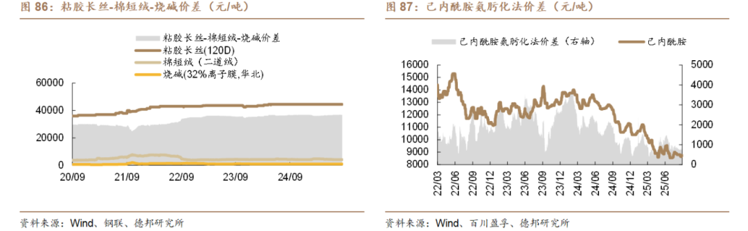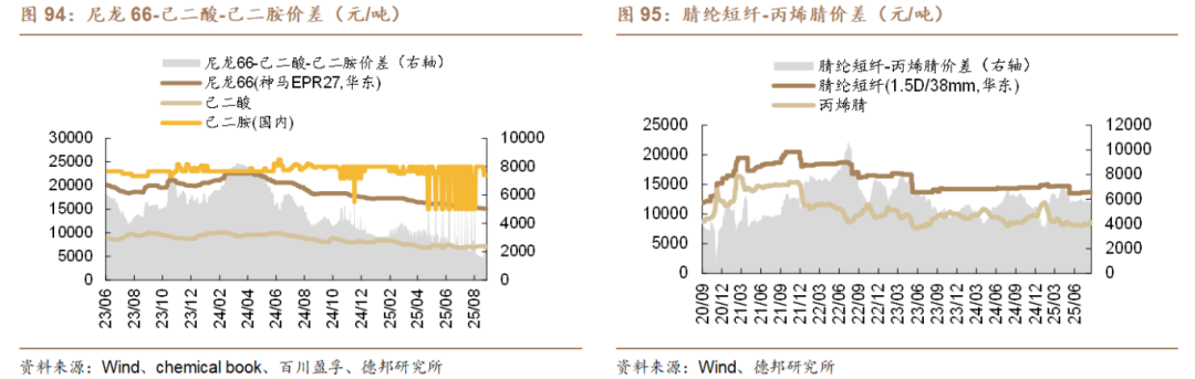 金九银十旺季来临,关注纺服链化工品。金九银十旺季来临!外需方面,中美关税再延期对终端纺织品及服装市场构成利好,美国、欧盟秋冬季样单逐渐下达,工装面料、环保类家纺面料出口需求好转,外商补库意愿增强,8月江浙地区工装、功能性面料出口订单环比增加15%—20%,部分龙头企业已锁定10月船期。内需方面,家纺秋冬订单备货启动,部分厂商开机率提升。根据全球纺织网订阅号,织造企业开机率已回升至68.8%,但企业间差异极大。弹力功能面料企业订单火爆,已排产至9月底,织机全线满负荷运转。常规面料厂商开机率仅80%,坯布库存高企,苦等9月初行情好转。行业龙头凭借规模与客户优势,提前锁定大量秋冬订单;中小织厂仍在短期、小批量订单中挣扎,对旺季期待又谨慎。分产品看,粘胶短纤:开工率高,持续去库。根据百川盈孚,截至9月12日,行业开工率89.38%,较上周+0.83pct;行业库存12.61万吨,较上周-1.1%。建议关注:三友化工、中泰化学。涤纶长丝:整体开工率高、库存低。根据Wind,截至9月12日,浙江织机POY/DTY/FDY库存分别19.3、31.1、27.6天,处于近五年47%、57%、53%分位。涤纶长丝开工率为91.43%。建议关注:新凤鸣、桐昆股份、恒逸石化。氨纶:开工率高位,库存持续下降。根据百川盈孚,截至9月12日,行业开工率76.75%;行业库存16.8万吨,较上周-0.59%。建议关注:华峰化学。粘胶长丝:行业开工维持高位,根据百川盈孚,截至9月12日,行业开工率93.3%。建议关注:新乡化纤、吉林化纤。随着金九银十旺季的来临,我们看好纺服链化工品复苏。