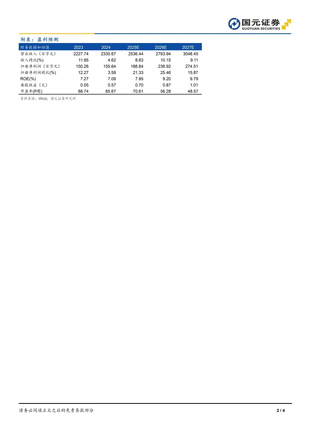 公司是领先的数据和智能方案提供商,未来持续成长空间较为广阔。参考上半年的经营情况,调整公司2025-2027年的营业收入预测至25.36、27.94、30.48亿元,调整归母净利润预测至1.89、2.37、2.75亿元,EPS为0.70、0.87、1.01元/股,对应的PE为70.61、56.28、48.57倍。考虑到行业的成长空间和公司业务的持续成长性,维持“买入”评级。